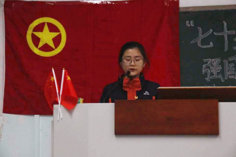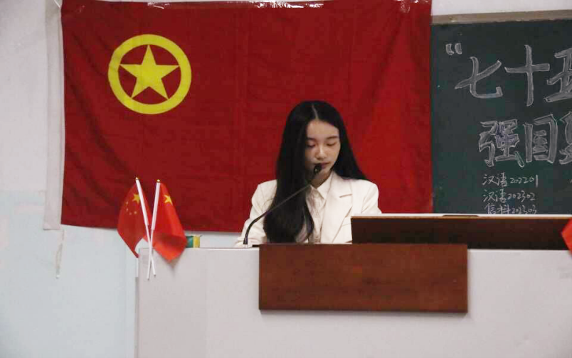 校青马班学员白曾敏带领支部深入学习习近平总书记在新中国成立75周年招待会上的重要讲话,讲话精神让同学们深刻认识到国家发展的不易与艰辛,使其明白个人命运与国家命运紧密相连,努力成为有担当、有毅力的新时代青年。
