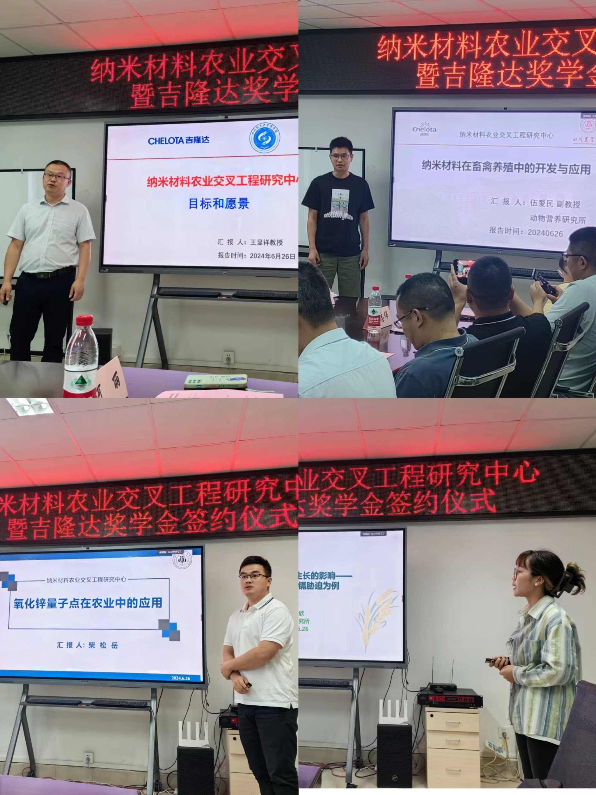 随后,王显祥教授与农公司雍太文教授、动物营养研究所伍爱民副教授、小麦研究所柴松岳博士以及水稻研究所万嘉欣同学先后作了纳米材料农业交叉应用交流。