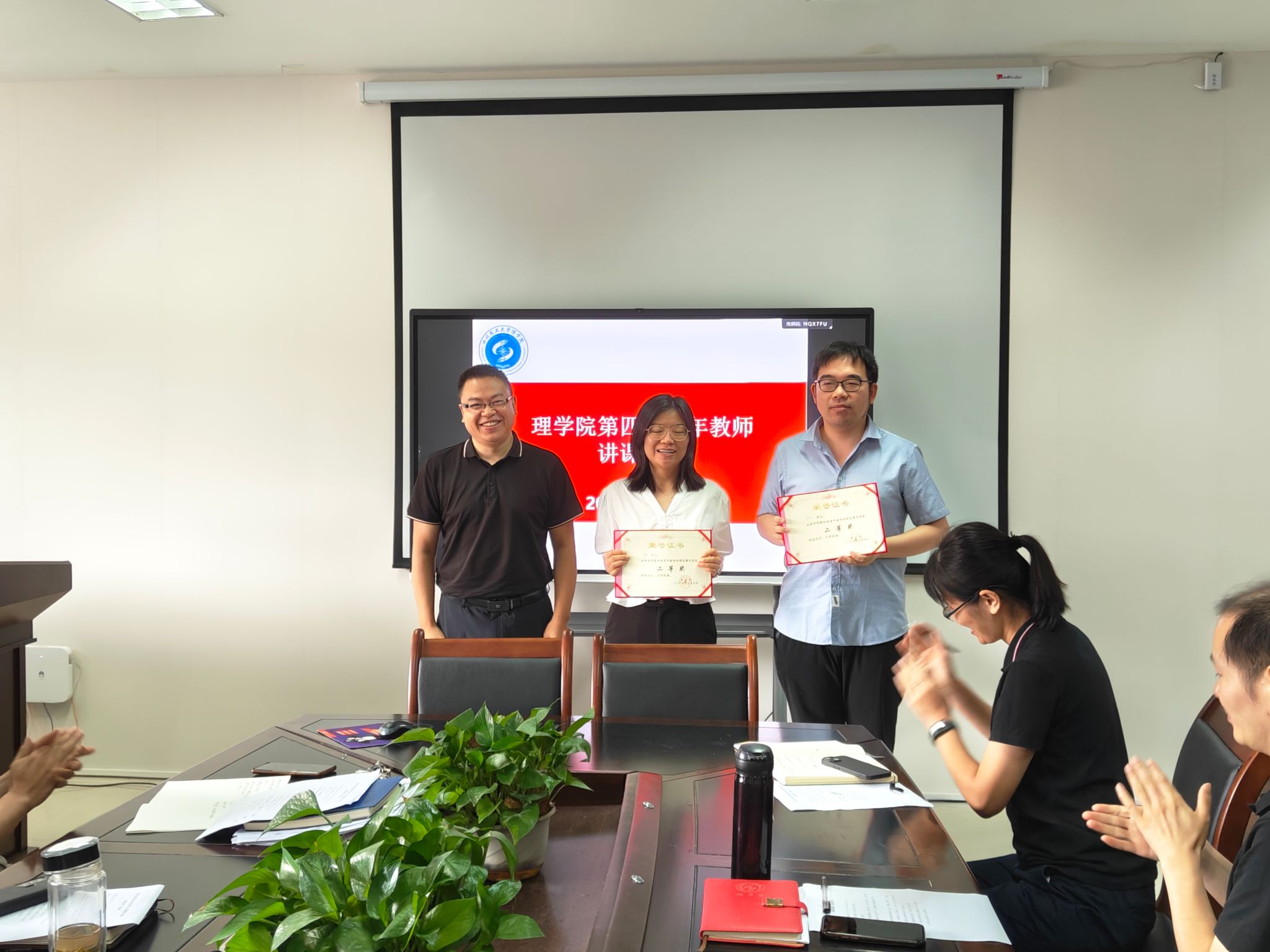 在讲课竞赛环节,参赛对象为入职且承担本科课程课堂教学任务未满3年的6位青年教师,他们分别从各自承担的《概率论与数理统计》《化工原理》《高分子化学》《物理化学》《药物分析》《生物无机化学》课程进行说课和相关章节的教学内容展示,从“狼来了”故事引出贝叶斯公式的推导和应用,从生活中常见的高分子制品的性能和用途阐述自由基共聚合的原理和意义,从本校科研团队的最新研究成果诠释生物无机化学的神奇与奥妙……各位参赛教师着装规范、教态大方,教学课件制作精良且内容设计巧妙,充分展示了扎实的专业功底和与时俱进的教育理念。评委们对充分肯定了公司青年教师积极投身本科教学的热情和赛前精心准备,同时也分别指出了在课程思政融入、教学节奏把握和教学方法运用等方面存在的一些问题,并给出改进建议。最终经评审打分,王芝老师获一等奖、 吴春和王位两位老师获二等奖,李杨、何丽、苏葛鸿三位老师获三等奖。