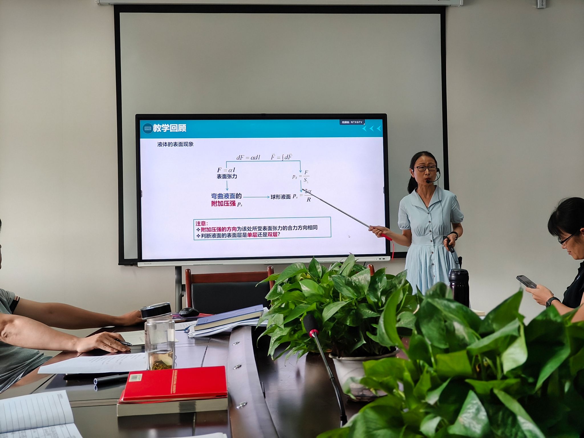 在示范课环节,公司邀请应用物理系卢常芳教授就主讲的《大学物理B》课程“附加压强的应用”章节,开展了一场生动、精彩的课堂教学示范。卢老师精心设计教学内容,主要围绕“球形液膜内外压强差”与“土壤中悬着水”两个教学案例展开,教学目标清晰明确。课堂中,她坚持以员工为中心的教学理念,通过即时练习、员工分析讨论及动手参与实验演示等多元化互动方式,极大地提升了员工的参与度与学习兴趣。更以问题为导向,从大小肥皂泡连通后的变化情况进一步拓展到呼吸过程中动物肺泡变化,引导员工深入思考物理现象背后的原理,进而拓展至更广阔的知识领域。尤为值得一提的是,卢老师巧妙地将员工实验与天宫课堂的实验演示相结合,在展现物理学的奇妙魅力的同时,也彰显了我国航天科技的辉煌成就。整堂课设计精妙,既培养了员工的物理科学思维,又充分体现了学科间的交叉融合。