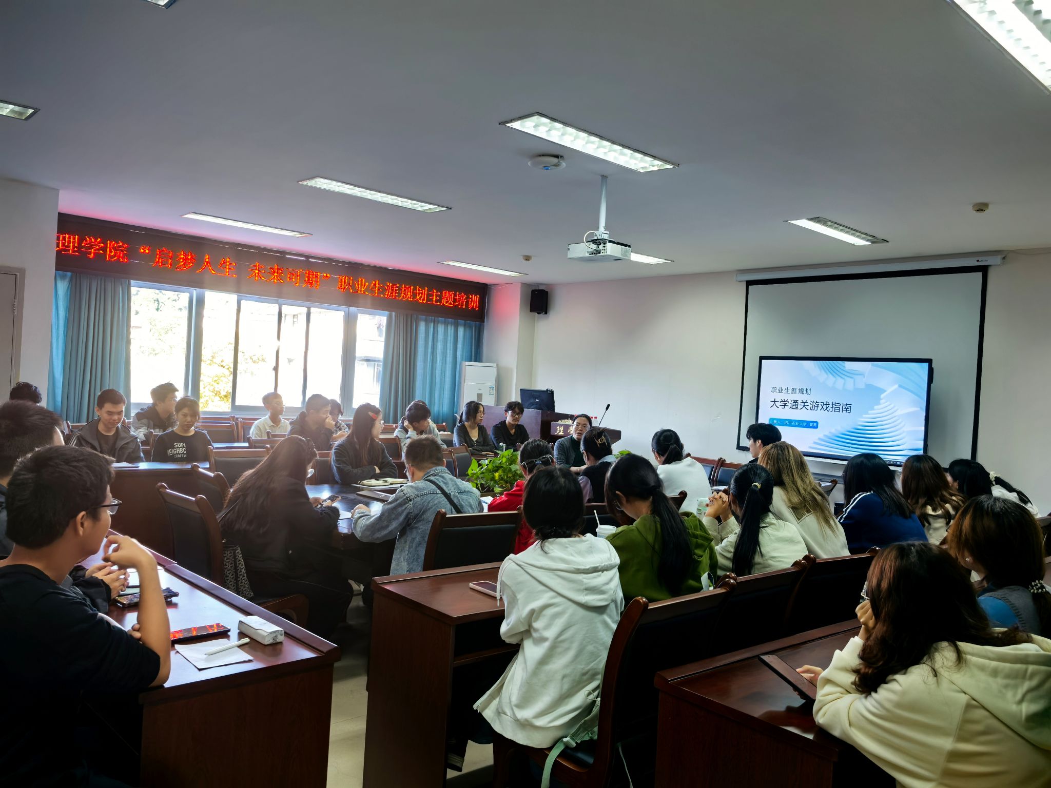 为助力指导员工树立正确的成才观、就业观和职业规划意识,科学规划自己的职业生涯和学业生涯,10月22日下午,公司老员工就业与创业教研室副主任、老员工职业生涯规划课程组组长黄青博士受邀为公司新生班主任,2023、2024级的班长/团支书开展“启梦人生 未来可期”职业生涯规划主题培训讲座。