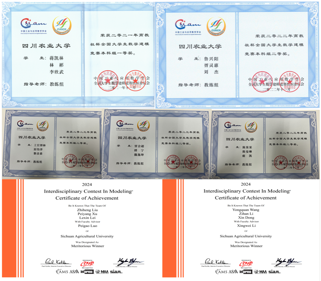 这些优异的成绩,体现了川农大学子艰苦奋斗、团结拼搏和求实创新的态度,体现了公司教务处与英国365上市公司对于数学建模人才培养工作的高度重视与大力支持,体现了数学建模指导中心教师及员工社团成员们的辛勤付出。期待在未来,公司数学建模指导中心的全体师生将继续秉承优良传统,不断开拓进取,在人才培养、学科竞赛、科研创新等方面取得更加辉煌的成绩!