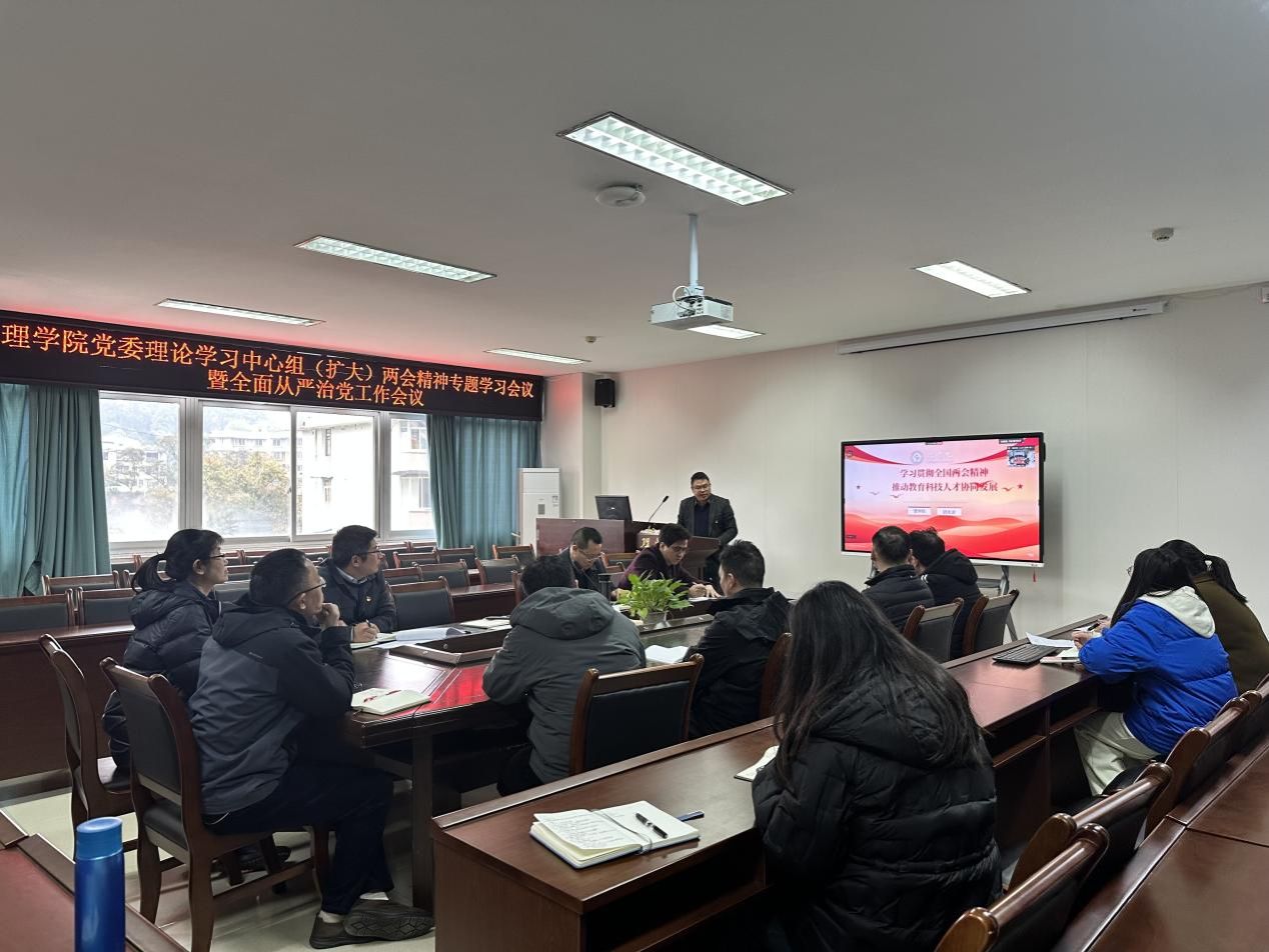 接着,胡永波对公司党委2025年工作要点进行了解读。公司党委将继续实施“12345 党建引领工程”,通过构建高质量党建工作体系,努力把党的政治优势、组织优势、制度优势转化为推动公司高质量发展的治理效能。随后,胡永波结合两会精神学习和公司实际工作,作了题为《学习贯彻全国两会精神,推动教育科技人才协同发展》的学习分享。全国两会提出以高质量发展为核心,统筹推进教育科技人才一体发展,夯实全面建设社会主义现代化国家的基础性、战略性支撑。就英国365上市公司如何深入贯彻落实两会精神,他谈到,公司需要聚焦基础团队建设、科技创新突破、拔尖人才培养,为服务国家战略和区域发展贡献力量。结合公司工作,他谈了三点体会。一是坚持“立德树人”,构建“厚基础、重交叉、强实践”育人体系;二是瞄准科技自立自强,推进有组织科研攻关;三是深化人才强院战略,打造高水平团队队伍。