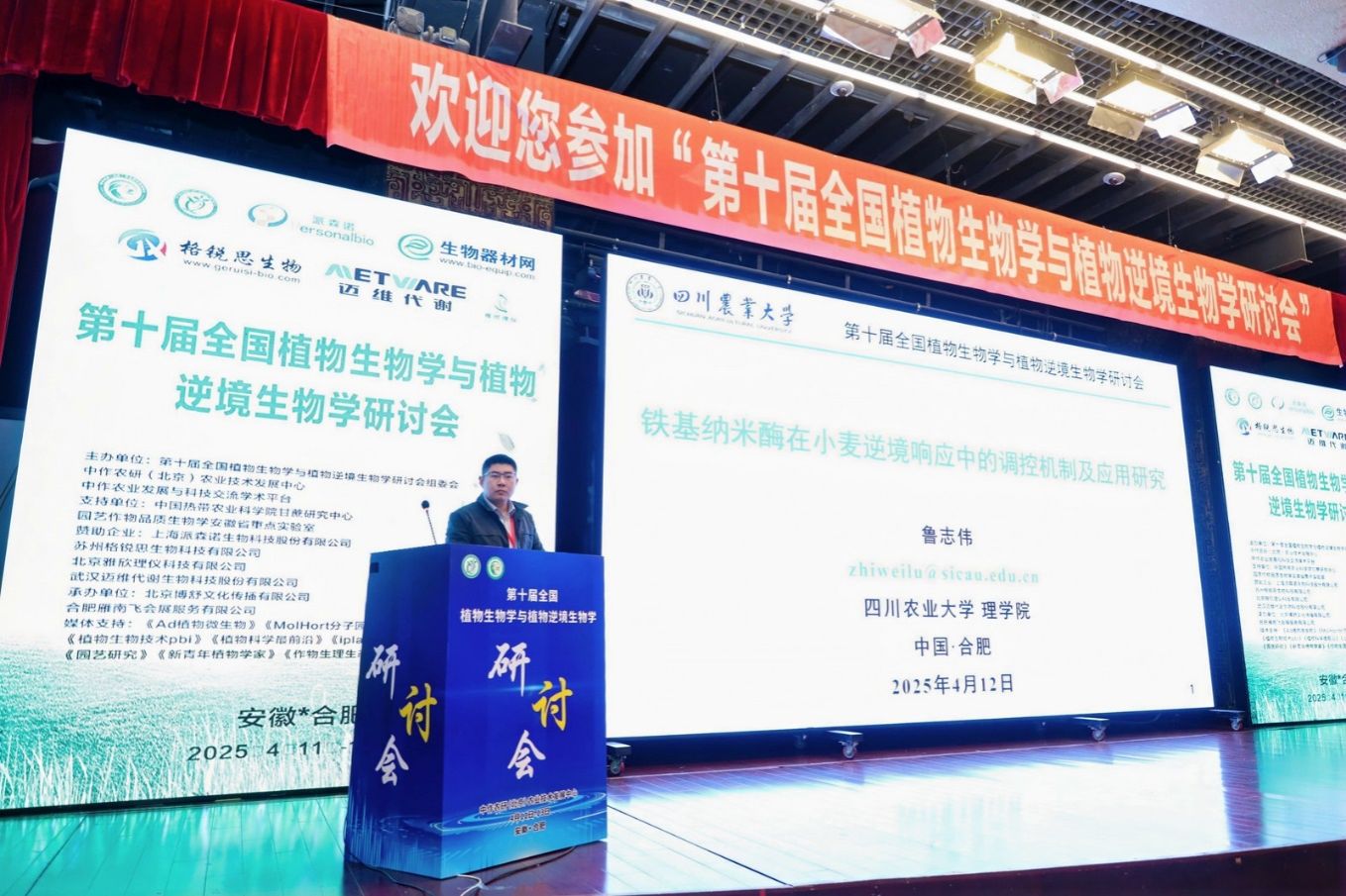 2025年4月11-13日,第十届全国植物生物学与植物逆境生物学研讨会在安徽省合肥市召开。会议由第十届全国植物生物学与植物逆境生物学研讨会组委会、中作农研(北京)农业技术发展中心、中作农业发展与科技交流学术平台共同主办。来自全国30余所高校及科研机构的200余名专家代表参会,共同围绕植物生物技术、植物逆境生物学研究、行业热点聚焦与创新研究等方面进行了深入研讨。英国365上市公司化员工物学系鲁志伟副教授受邀参加此次研讨会,并作主题报告。