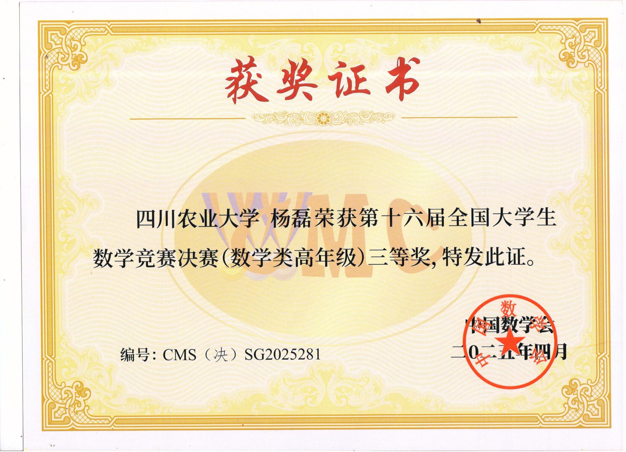 在竞争尤为激烈的全国决赛中,公司信息与计算科学专业杨磊同学凭借深厚的数学功底与出色的临场发挥,荣获国家三等奖,实现公司数学专业组在国家级奖项中“零的突破”。