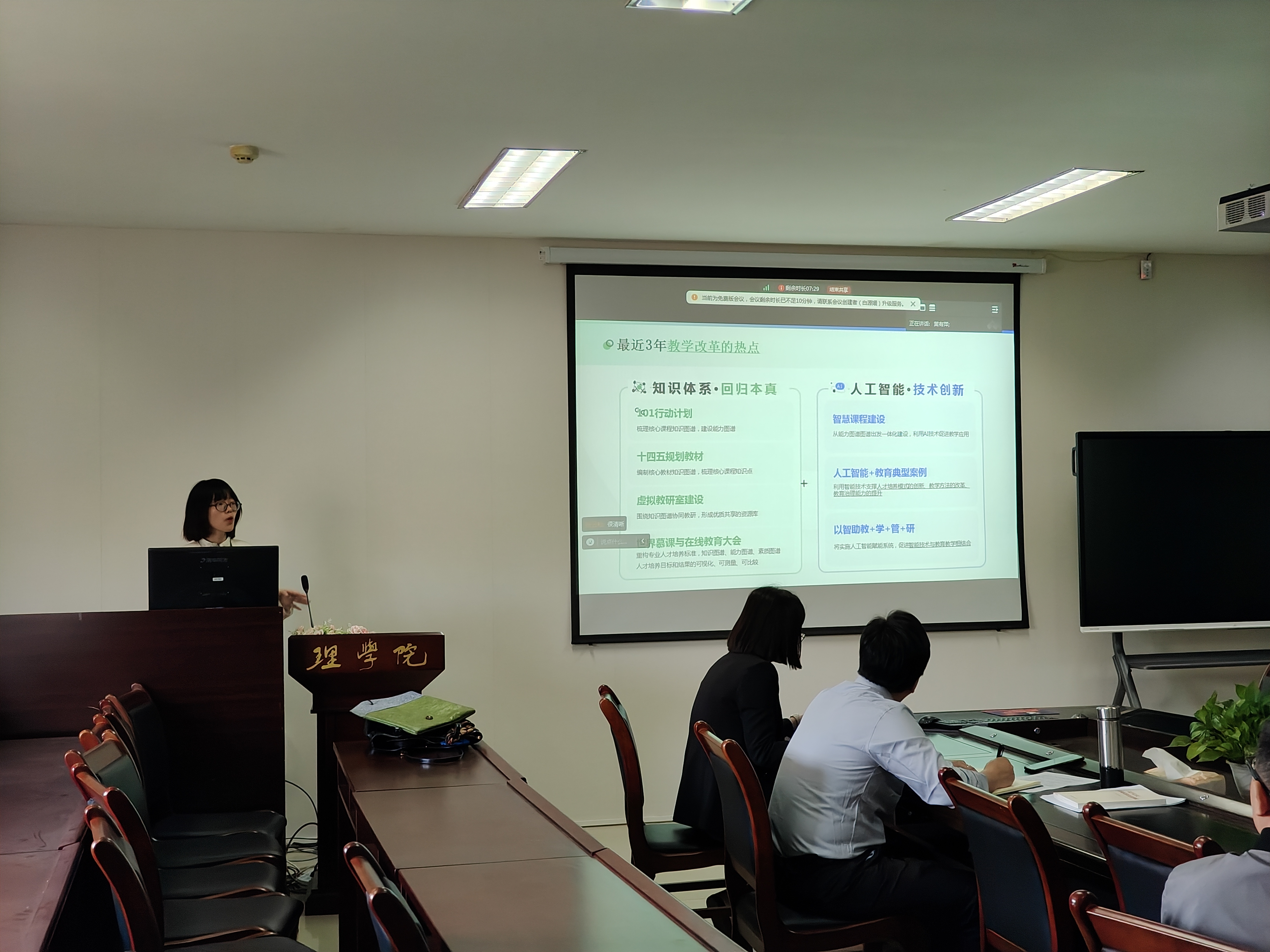 会上,黄有萍作了题为《基于“人工智能+”构建新形态AI智慧课程体系》的报告,系统阐释了新形态AI智慧课程的内涵与特征,详细分享了人工智能赋能教学应用案例及建设成效,并深入解析了智慧课程的建设方式及路径。与会教师围绕人工智能技术与公司产品深度融合展开深入探讨,特别是如何以数理化为基础并结合专业特点设计AI赋能方案?在AI教学工具开发中如何平衡“自主建设”与“引入成熟平台”的关系?有机化学实验如何用虚拟仿真+AI指导解决实操难题……通过热烈研讨与思想碰撞,为公司下一步的AI赋能教学改革凝聚共识、明晰方向。