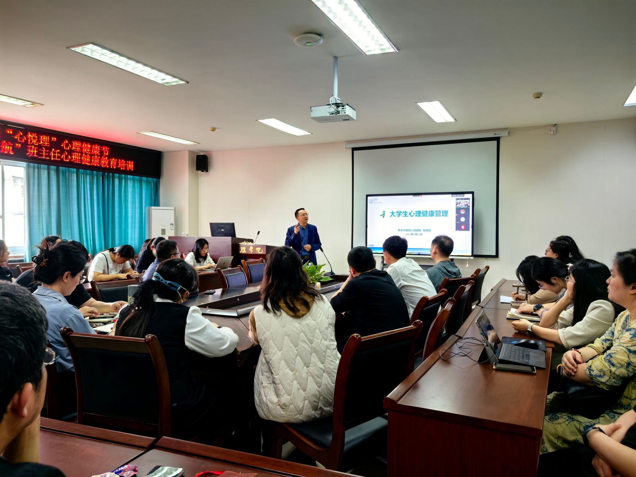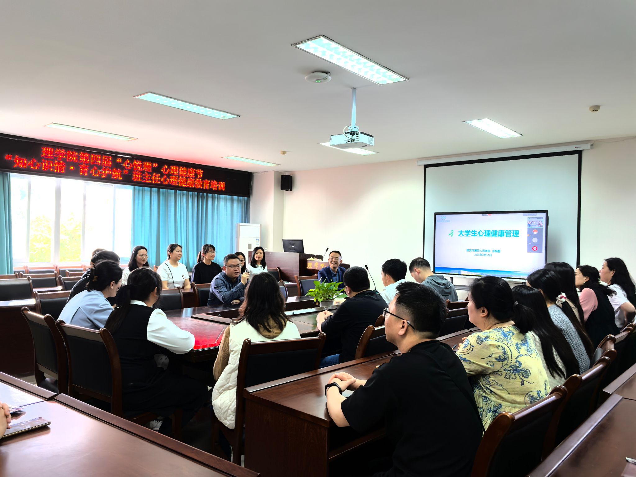 4月15日下午,雅安市第四人民医院张炳智副经理应邀来院为班主任开展心理健康教育专题培训。公司党委书记胡永波主持会议,公司近40名班主任参加培训。