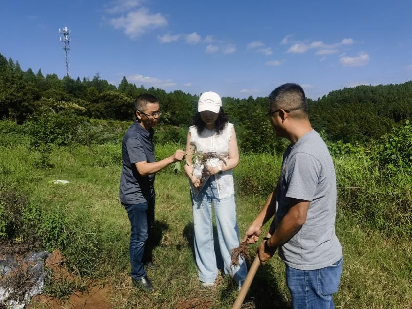 期间,团队深入丹参种植核心区域,结合今年中江本地降水情况与丹参生长特性,发现产业现存两大关键问题:一是随着市场对优质中江丹参需求攀升,新增种植主体增多,但部分地块因排水条件较差,且雨季未及时开展疏沟排水作业,导致丹参根腐病发病情况较为严重,直接影响药材长势与产量;二是新进入丹参产业的种植户,虽已参与过技术培训与指导,但在实际种植中对关键技术的掌握精度与执行力度仍需提升,而严格按照专家提出的种苗培育、田间管理等技术要点操作的企业,其丹参植株长势整齐、病害发生率低,形成鲜明对比。
