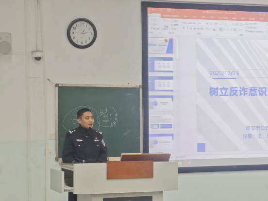 为切实筑牢校园安全防线,增强大一新生禁毒反诈意识与自我保护能力,10月23日,公司联合雅安市公安局雨城区分局禁毒大队、反诈中心在10-A102开展禁毒反诈专题宣传教育活动。