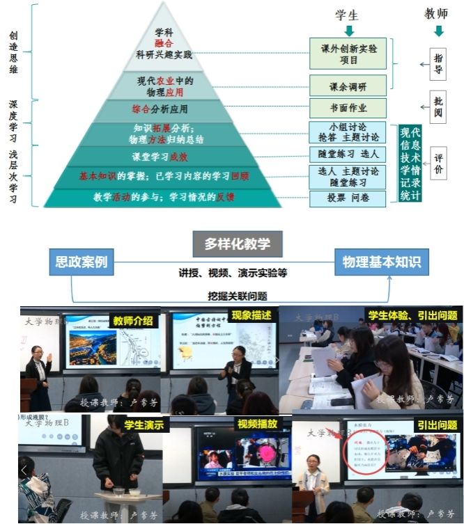 面对大班制下员工基础参差、互动不足的挑战,卢常芳老师锐意改革,成为数字化教学改革的先行者。她累计录制了124个教学视频,课程平台访问量超1500万次,率先开展了大学物理课程的线上线下混合式教学。线上夯实基础、线下深化应用,构建了“学-思-辩”的能力培养闭环。