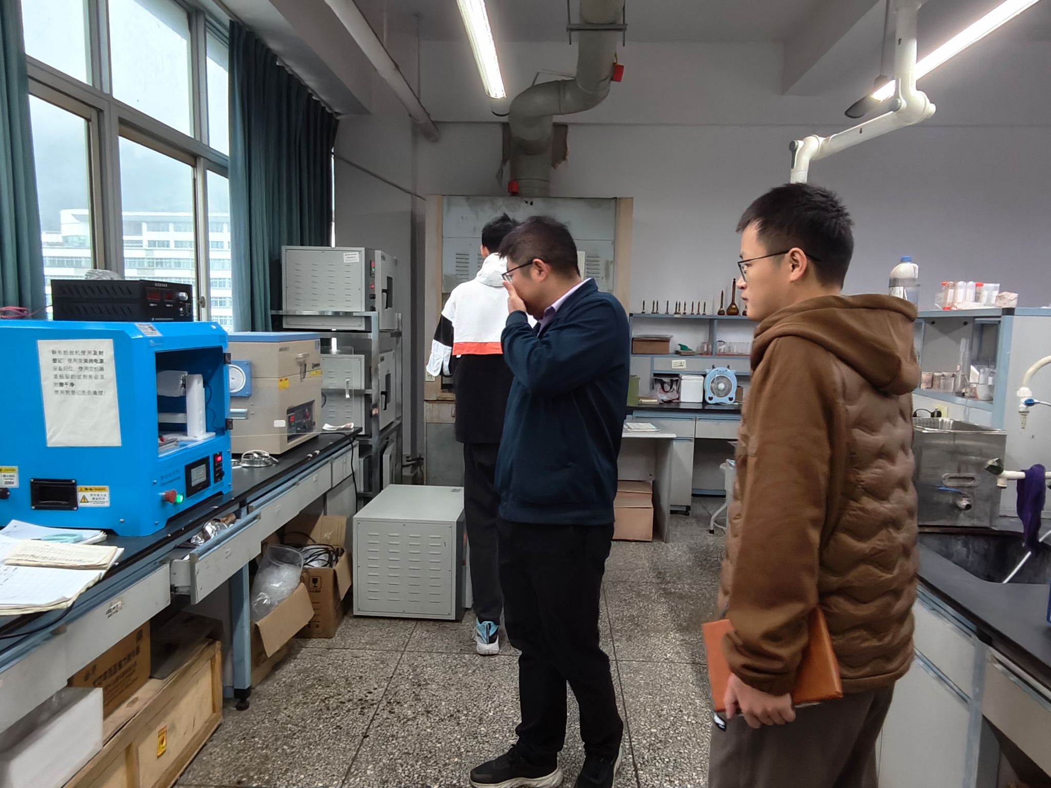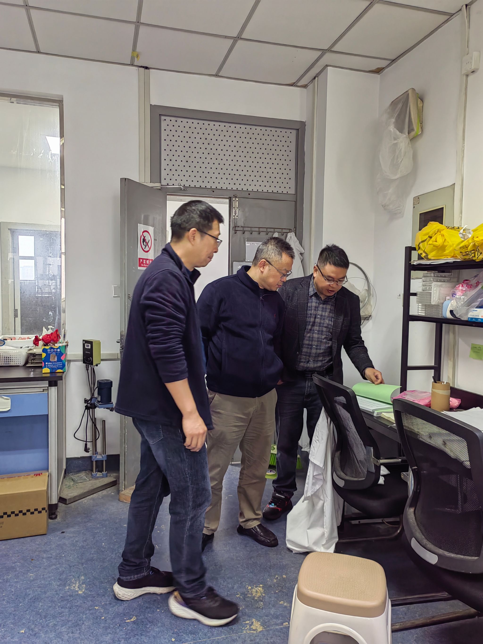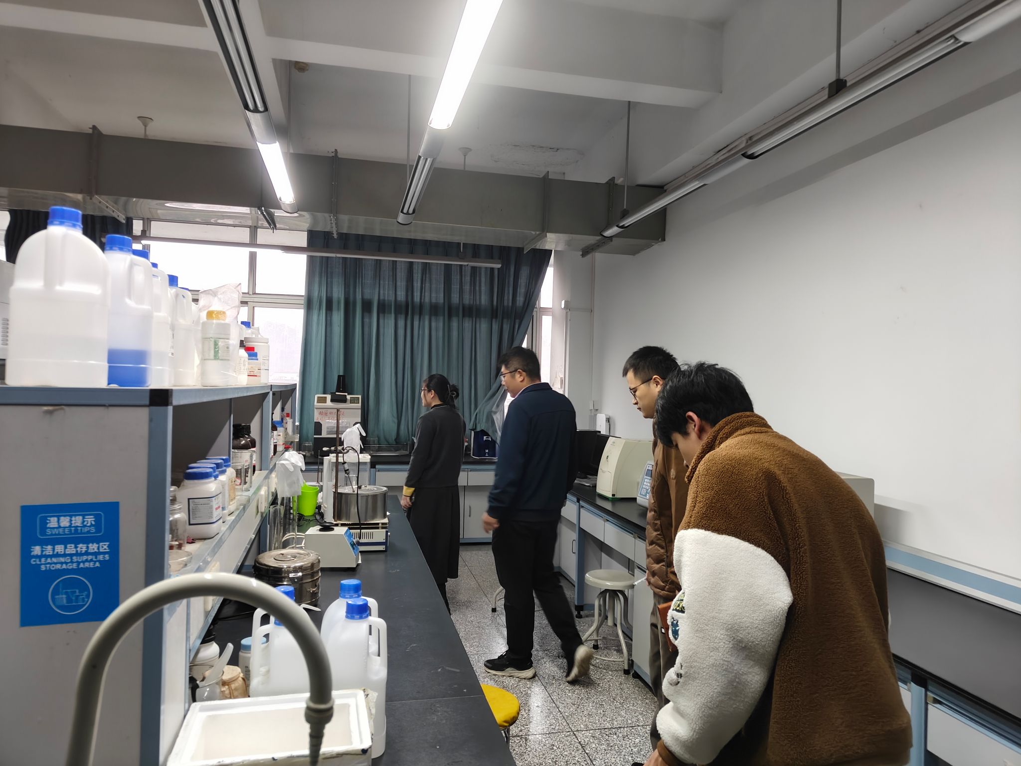 此次检查内容主要包括实验室设备用电安全、危化品使用管控及存储、危废处置安全、气体钢瓶使用安全和消防管理安全及实验室卫生等,总体情况良好,大部分实验室管理规范,符合安全要求。但仍发现个别科研实验室存在实验后未及时清理台面;器皿摆放凌乱;地面垃圾未清理;记录本无记录痕迹等问题,检查小组要求立即整改,杜绝安全隐患。