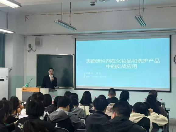 晟妆品牌高级工程师陈玉,围绕表面活性剂的化学原理,借沐浴露、洗面奶等日常用品,从清洁原理到泡沫性能,用生活实例展示其在化妆品及日常生活中的广泛应用,让化学知识“活”了起来。