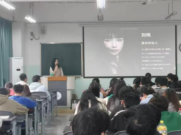 四川晟妆生物科技有限公司董事长刘桃,以创业者身份,讲述与晟妆品牌共同成长的历程,从初创时的艰难到在化妆品市场站稳脚跟。她分享面对挫折时的坚定选择,告诉同学们人生选择决定未来,只要心怀梦想、坚持不懈、勇于磨砺,每一次选择都将为未来成功铺就道路。