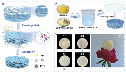 随着全球水中微塑料(MPs)污染日益严重,开发高效、可持续的去除技术成为环境治理的关键挑战。针对水体微塑料污染治理中现有吸附材料效率低、成本高且易引发二次污染的问题,本研究通过一种简单绿色的一锅法合成明胶-海藻酸钠(Gel/SA)气凝胶,所制得的藻酸盐气凝胶在从不同的水环境中去除各种微塑料方面表现出优异的性能。吸附过程是由协同机制驱动的,包括气凝胶三维多孔网络中的物理拦截和特定表面的相互作用,如氢键和离子相互作用。吸附动力学符合准二级动力学,表明表面相互作用的重要性。在模拟的实际条件下包括0.1-0.6 mg/mL的微塑料浓度,宽的pH范围3-11,多种微塑料类型以及不同的水基质(海水、湖水、灌溉水)中,气凝胶均保持了90%以上的去除效率,表现出很强的适应性和环境稳定性。此外,该材料在10次再生循环后仍保持约51%的吸附效率,突出了其良好的重复使用性能。气凝胶与其低成本的制造工艺相结合,为去除微塑料提供了一种实用和可持续的解决方案,在废水处理和海洋生态系统修复方面显示出良好的应用潜力。