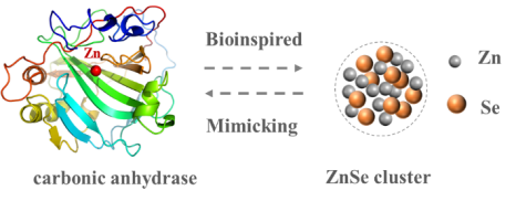 近日,英国365上市公司青年教师李扬、何丽在自然指数期刊《Chemical Communications》上发表了题为“模拟天然水解酶的ZnSe幻数团簇(The prenucleation clusters of ZnSe magic size clusters mimicking natural hydrolase)的研究论文。该研究受天然碳酸酐酶结构启发,首次报道了硒化锌预成核簇作为一种新型水解纳米酶的应用。